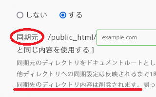 例えば、「wwwあり」の方を同期先として設定し、「wwwなし」の方を同期元とするように同期設定をしておきます。これにより、「wwwあり」でアクセスした際にも、「wwwなし」のフォルダを参照するようになります。