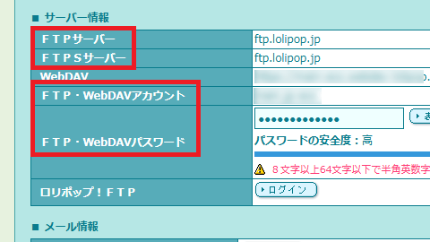 この「3つの情報」については、レンタルサーバーを契約した際、サーバーの準備が完了した後に送付されるメールに記載されていることが多いです。